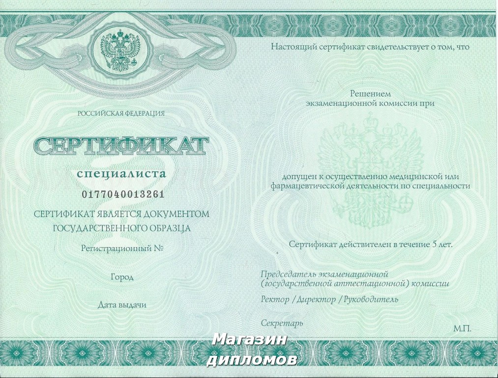 МЕДИЦИНСКИЙ СЕРТИФИКАТ С 2013 ПО 2019 ГОД